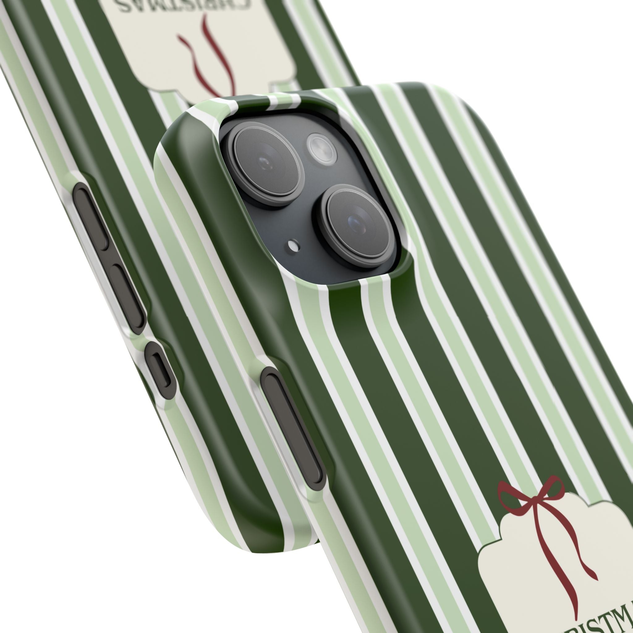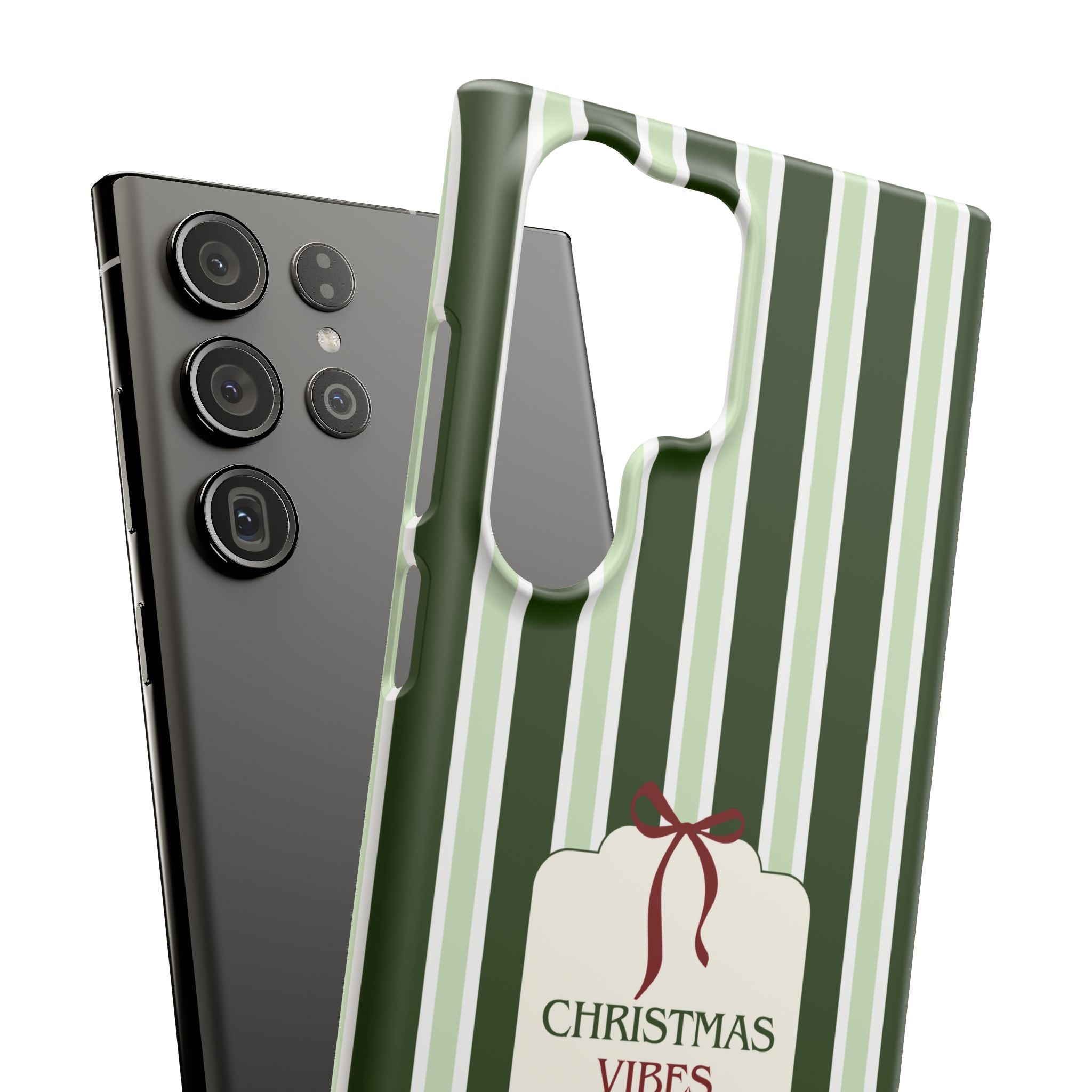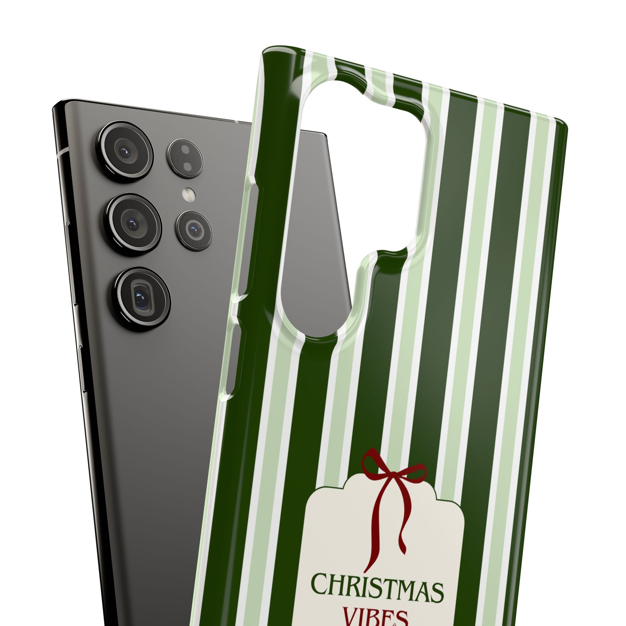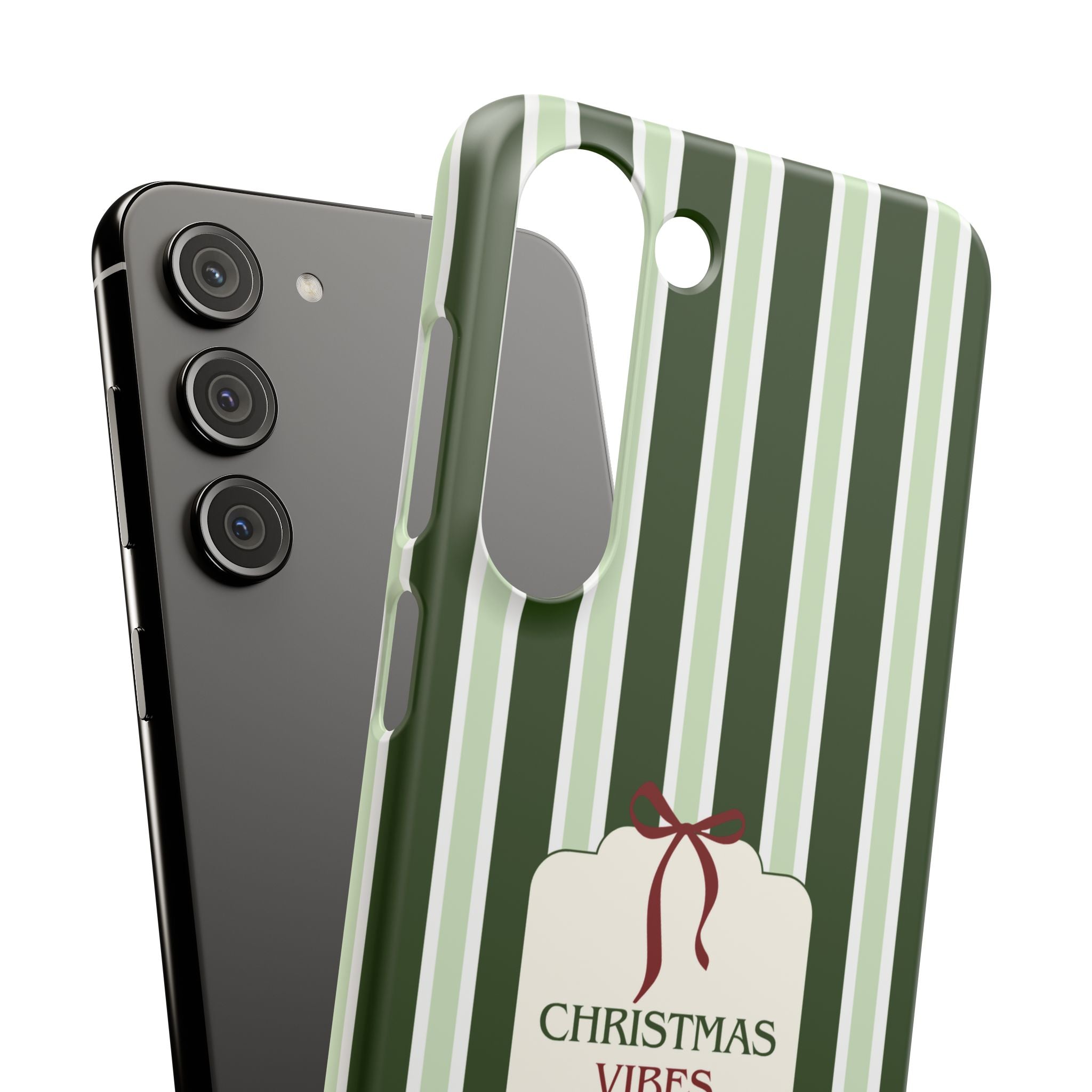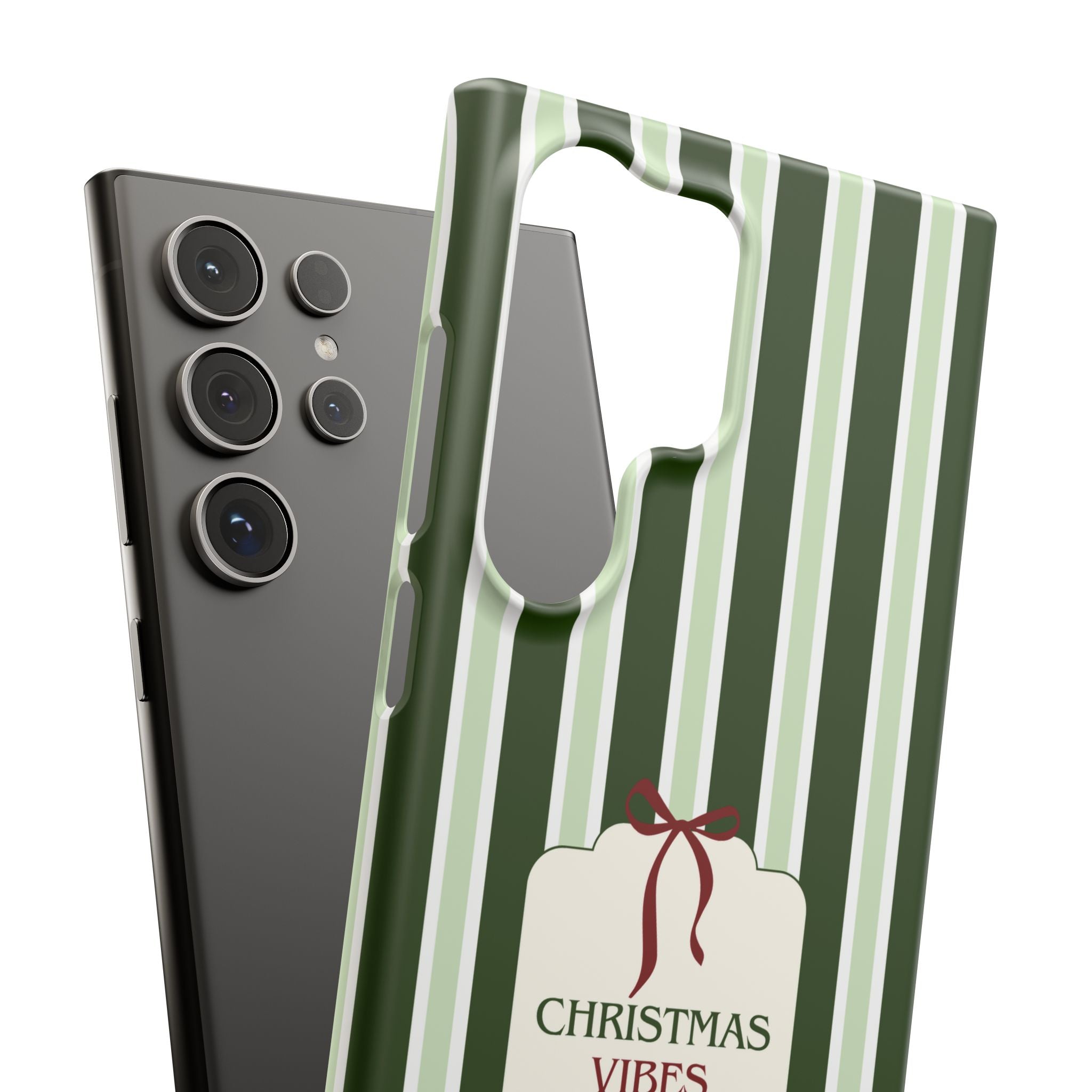 Christmas Vibes Only – schlank & stilvoll, schützt dein Smartphone zuverlässig vor Kratzern & leichten Stößen und bringt mit den frischen grünen Streifen und dem „Christmas Vibes Only“-Schriftzug moderne, entspannte Weihnachtsstimmung in deinen Alltag.