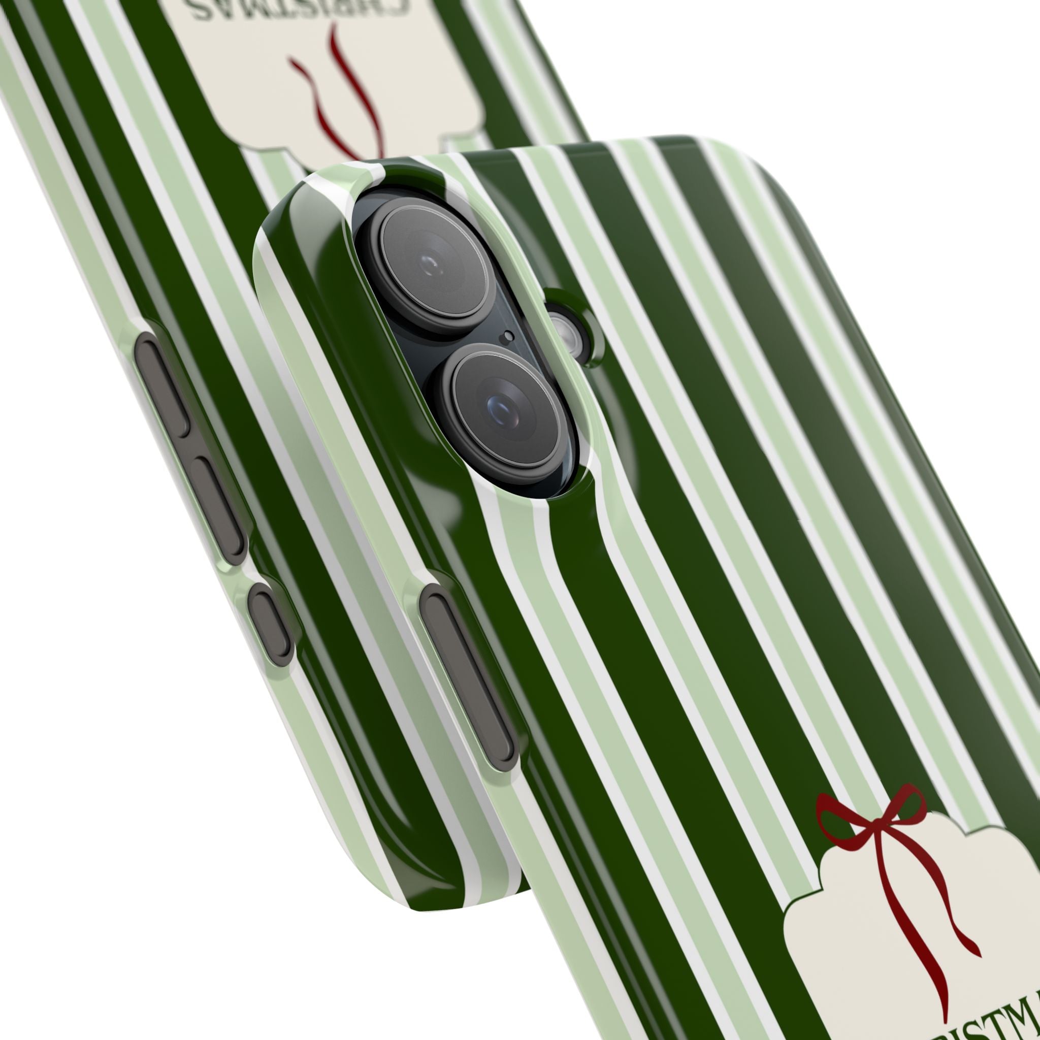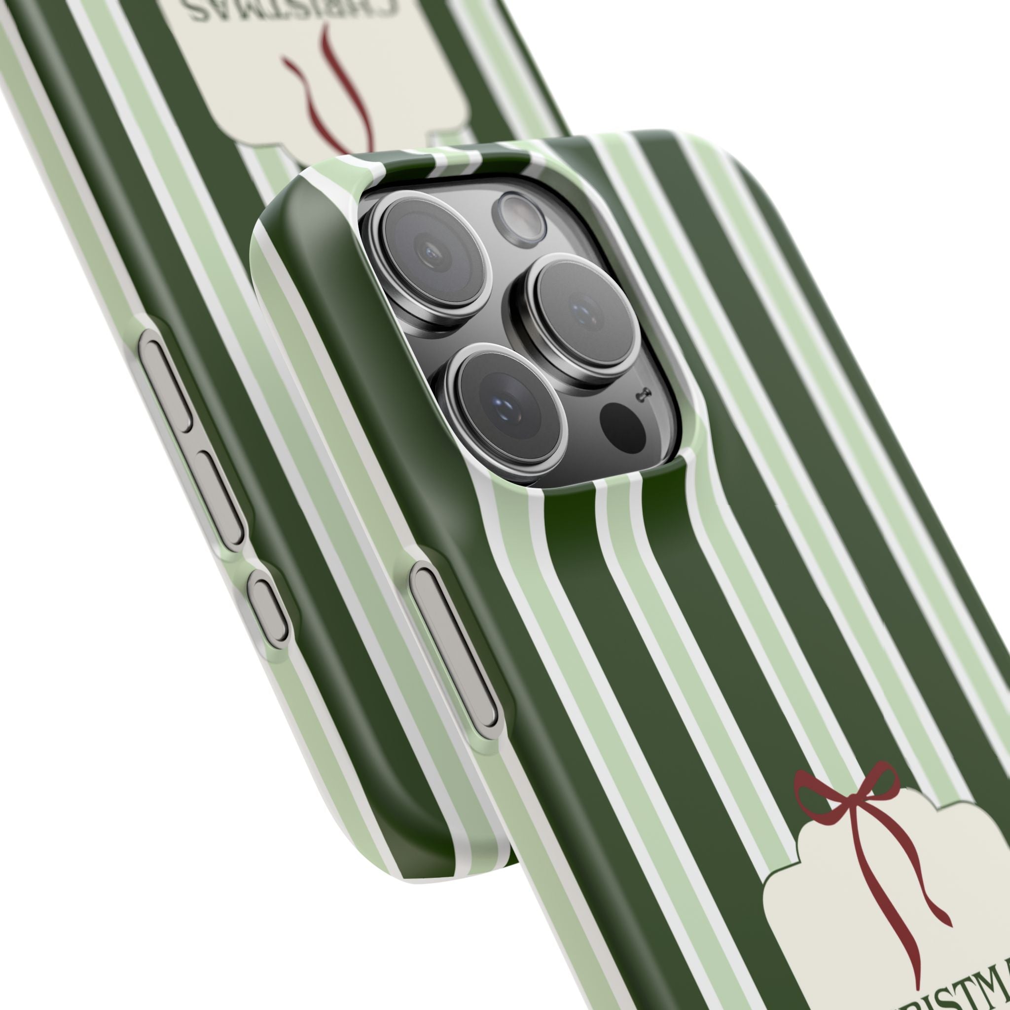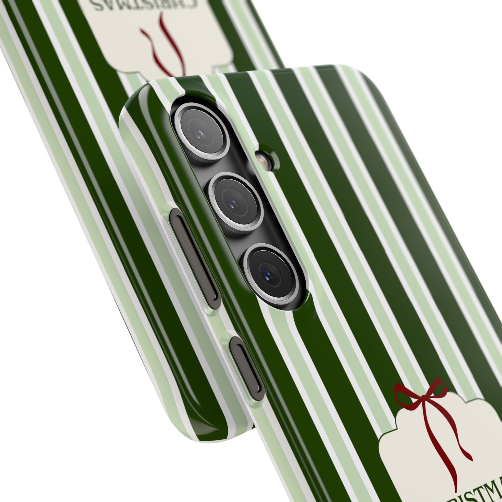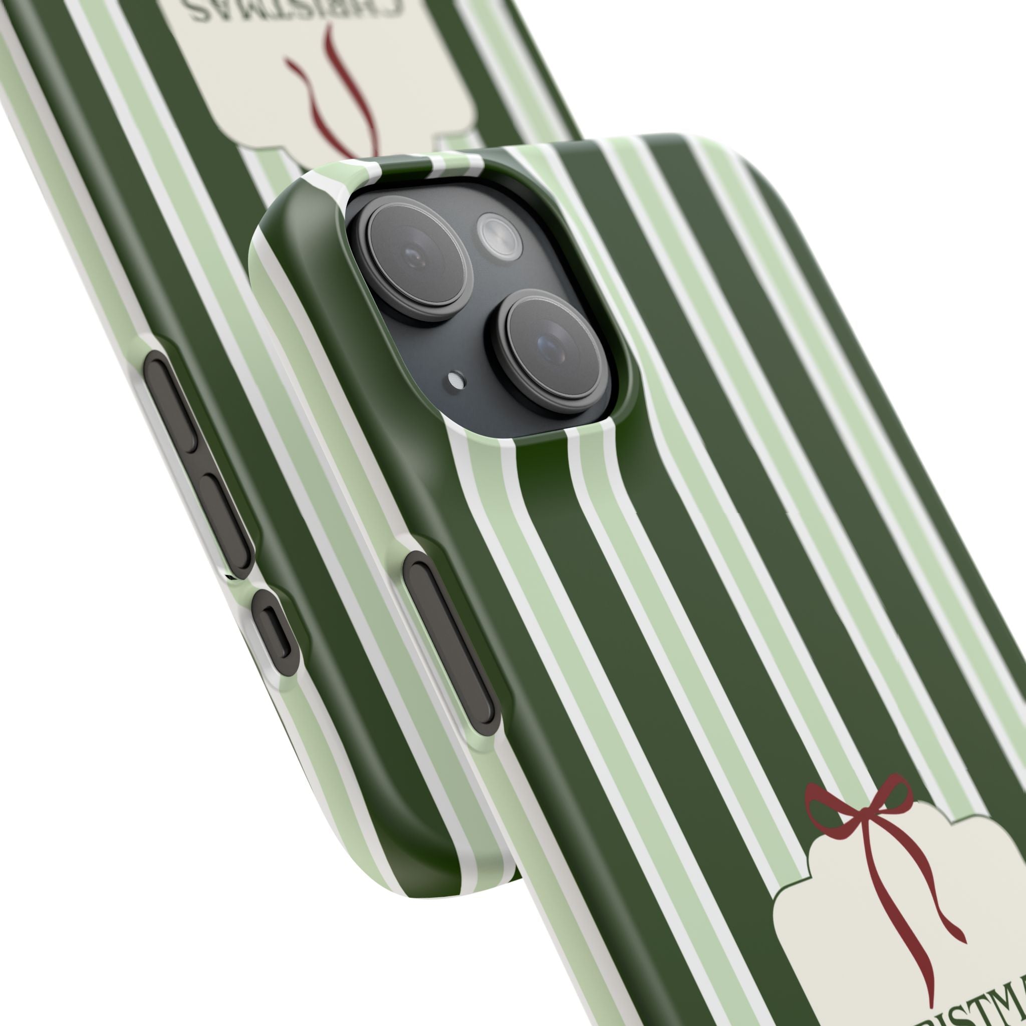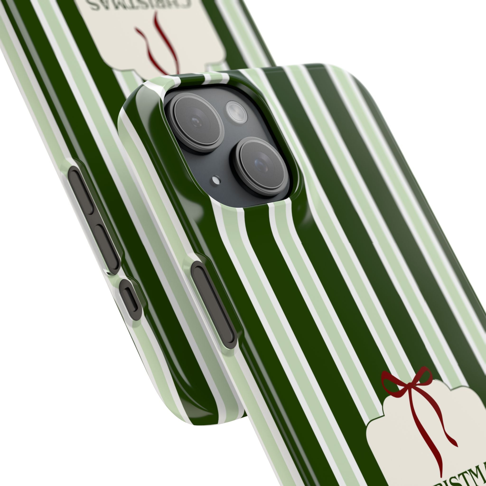 Christmas Vibes Only – schlank & stilvoll, schützt dein Smartphone zuverlässig vor Kratzern & leichten Stößen und bringt mit den frischen grünen Streifen und dem „Christmas Vibes Only“-Schriftzug moderne, entspannte Weihnachtsstimmung in deinen Alltag.