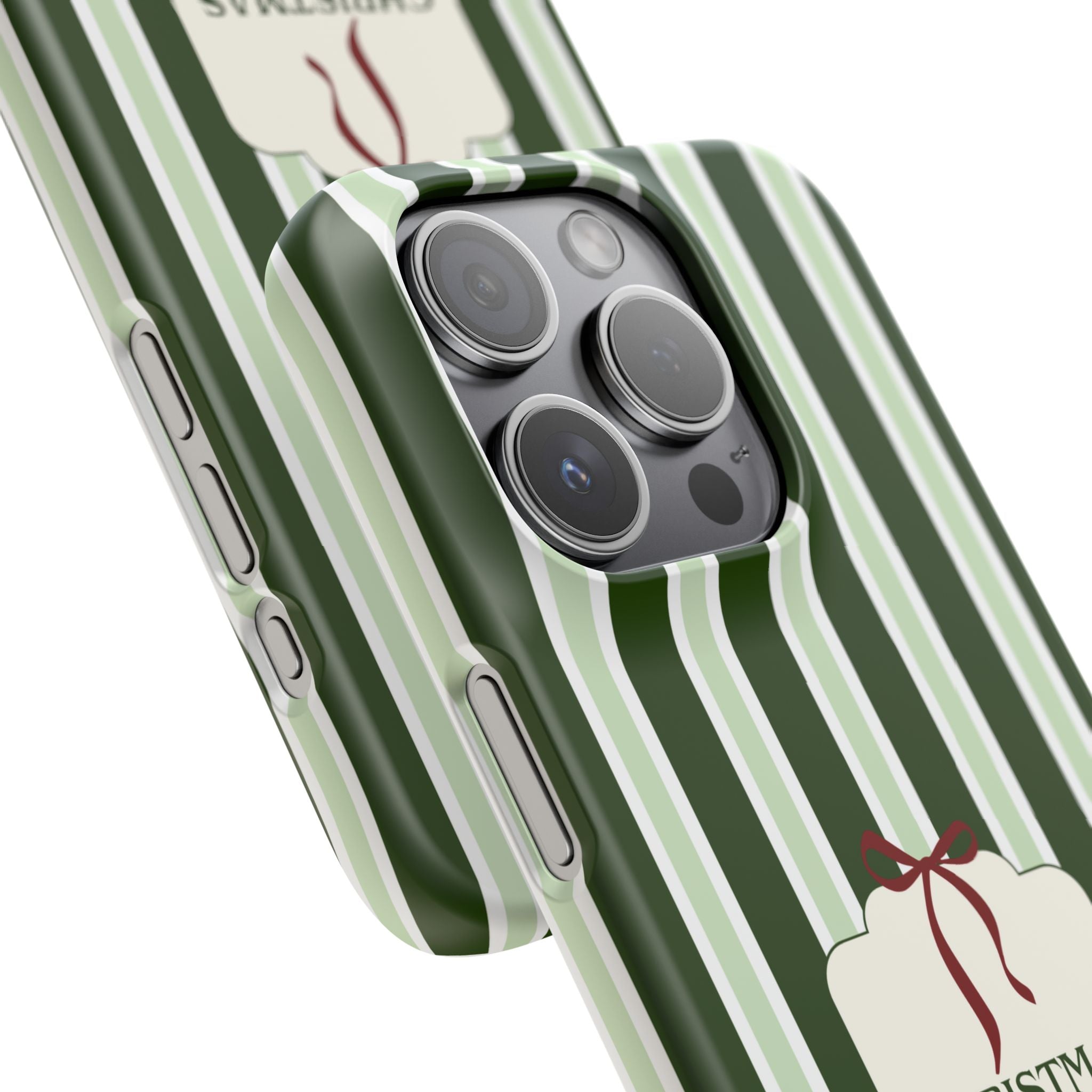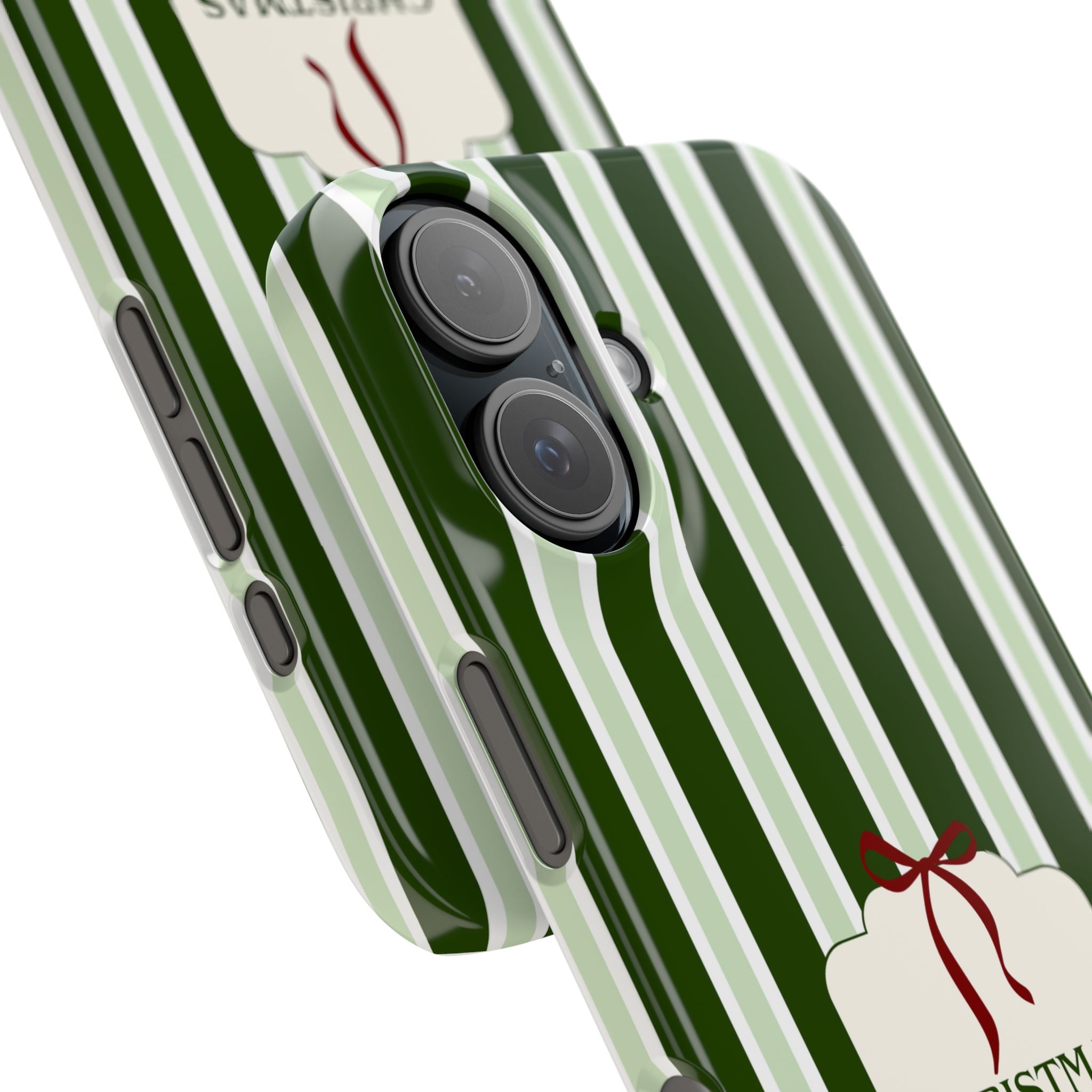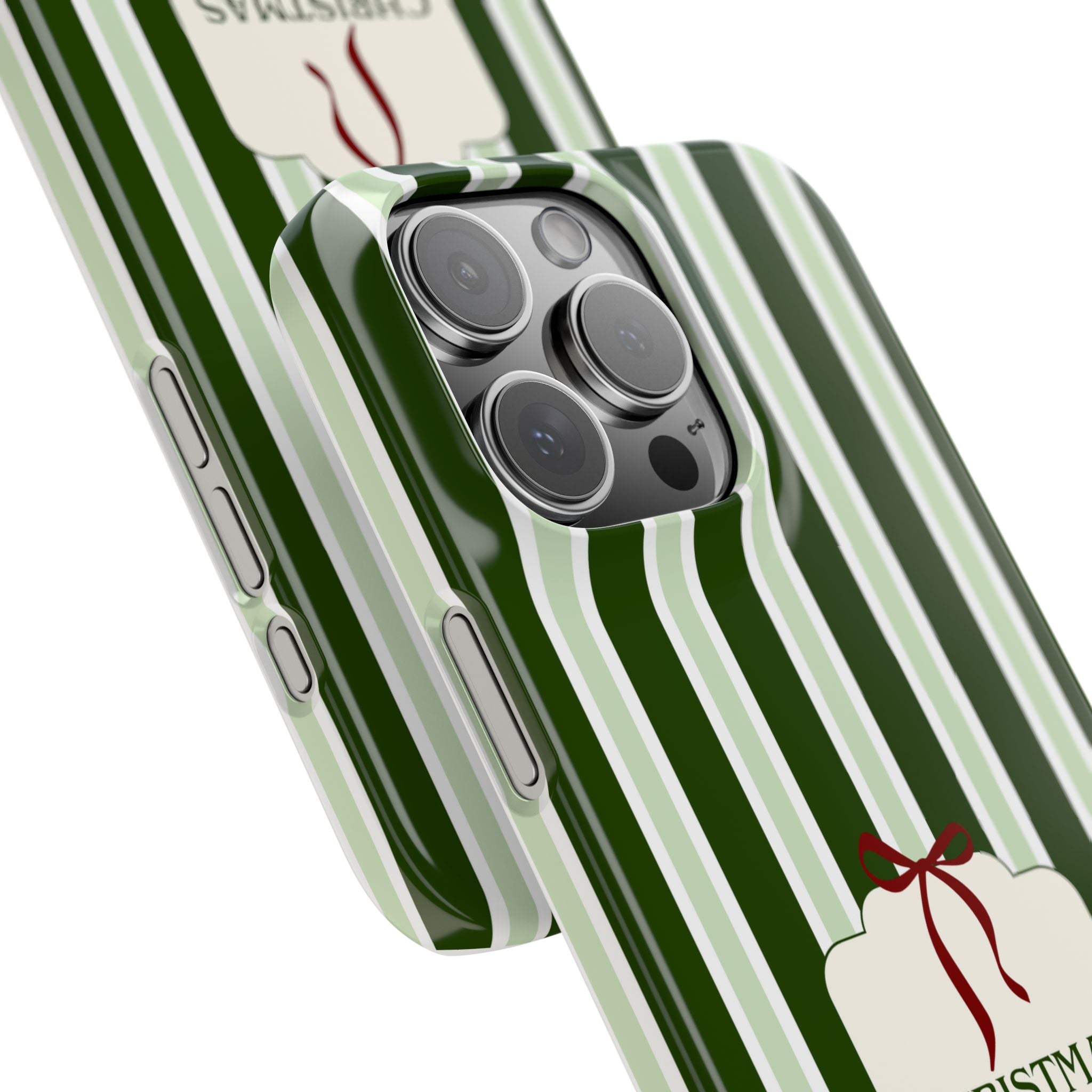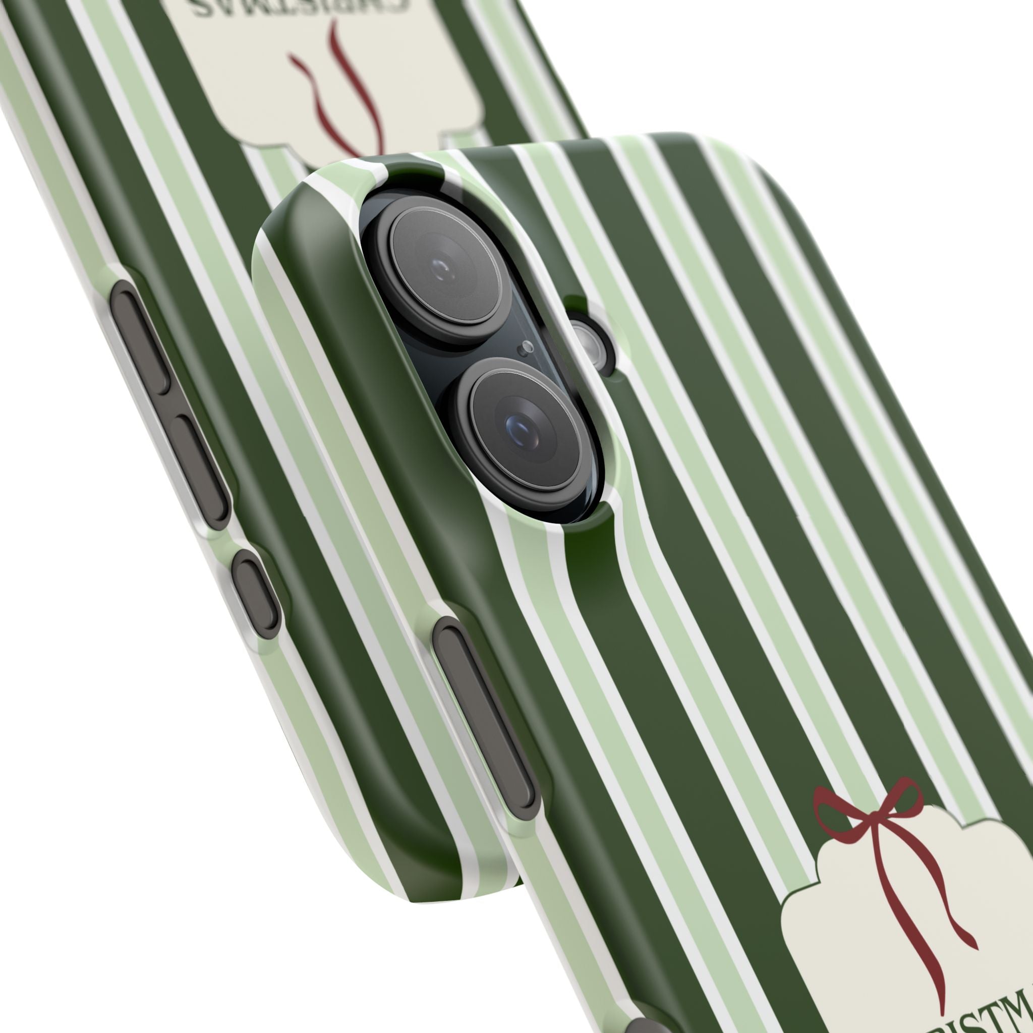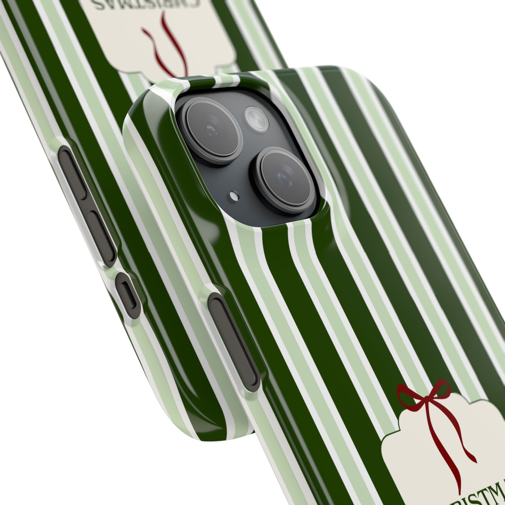 Christmas Vibes Only – schlank & stilvoll, schützt dein Smartphone zuverlässig vor Kratzern & leichten Stößen und bringt mit den frischen grünen Streifen und dem „Christmas Vibes Only“-Schriftzug moderne, entspannte Weihnachtsstimmung in deinen Alltag.