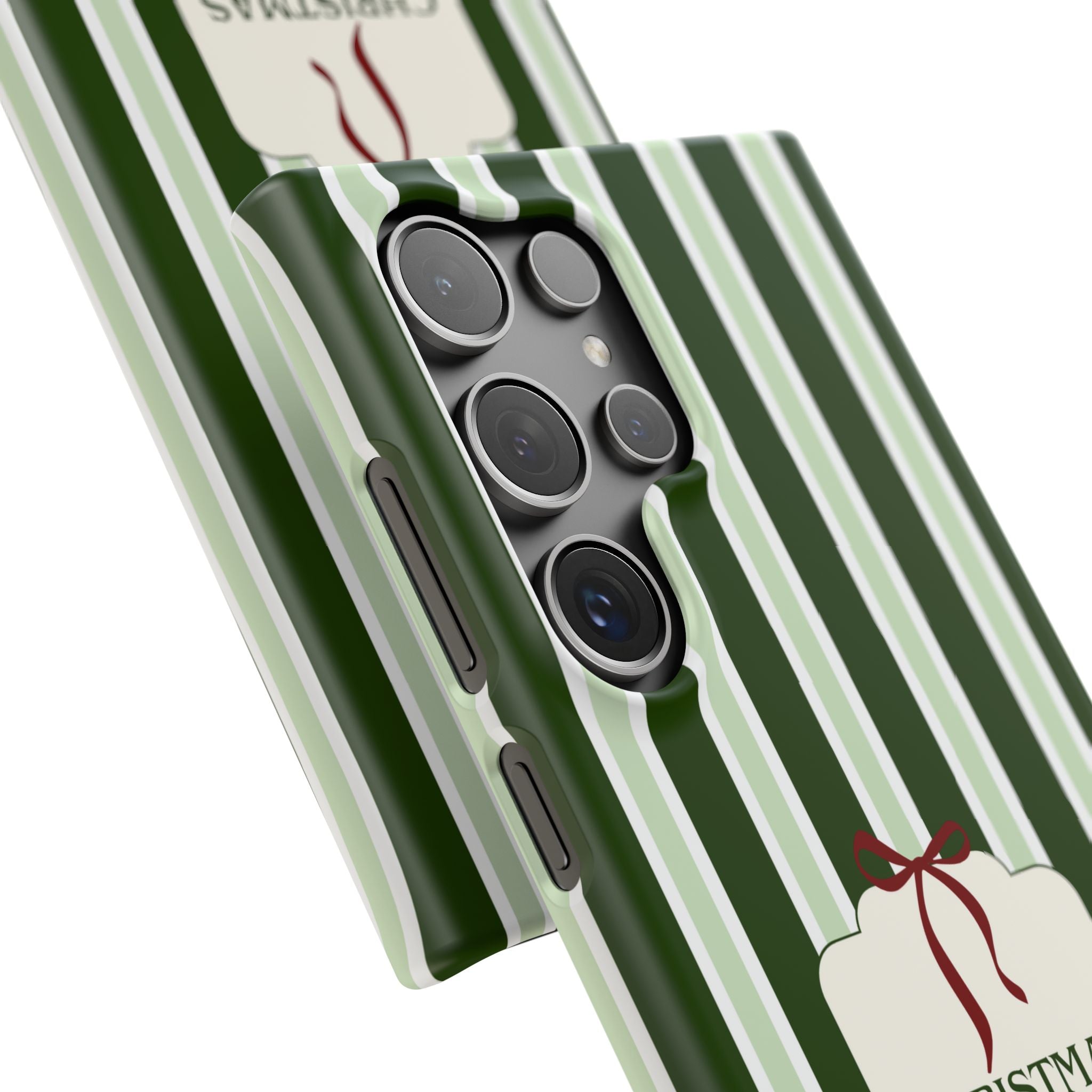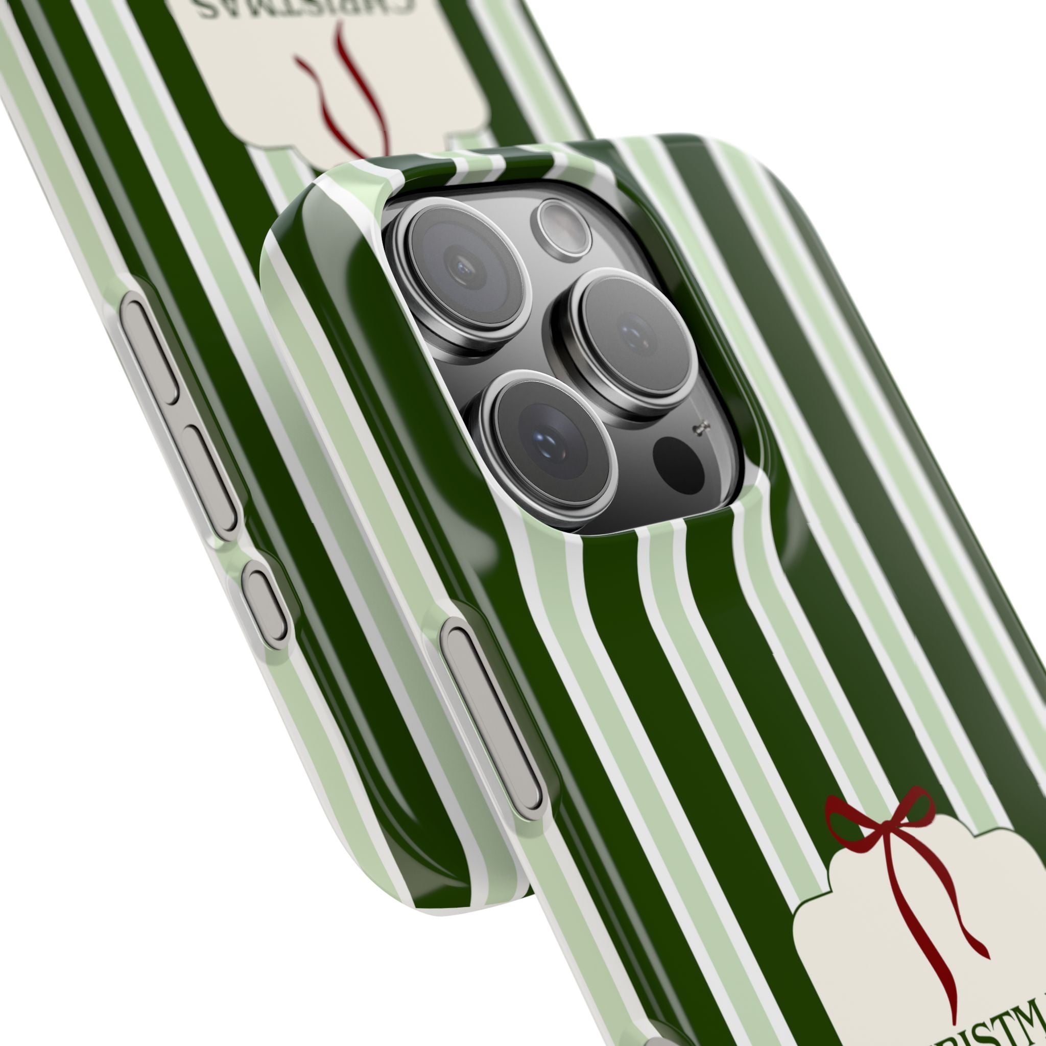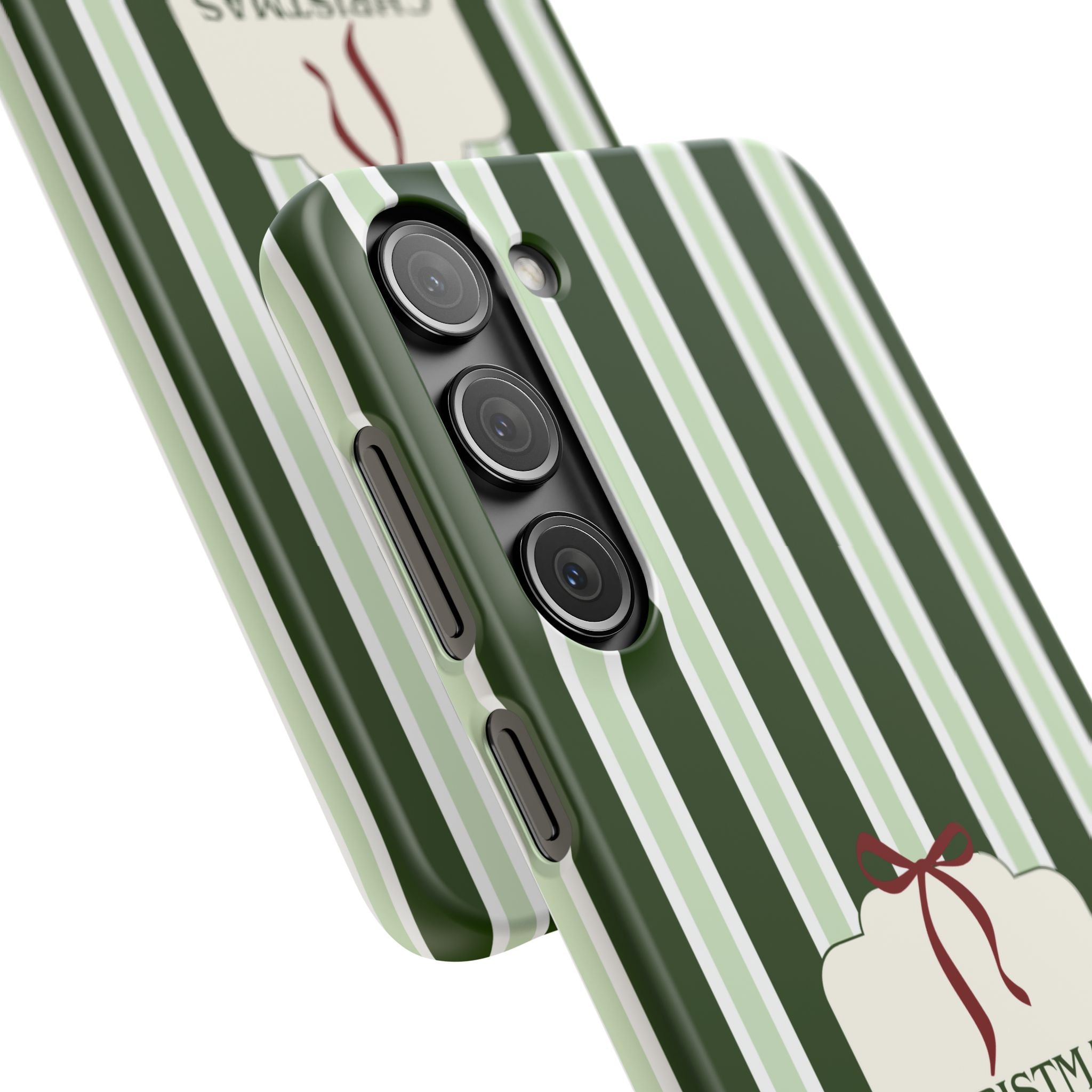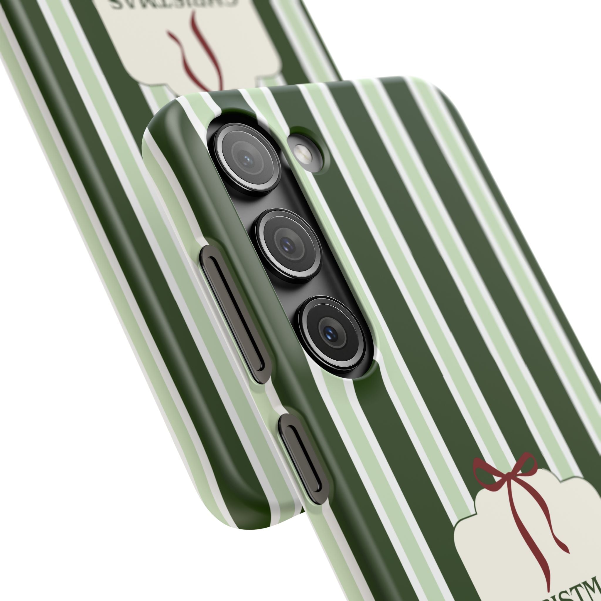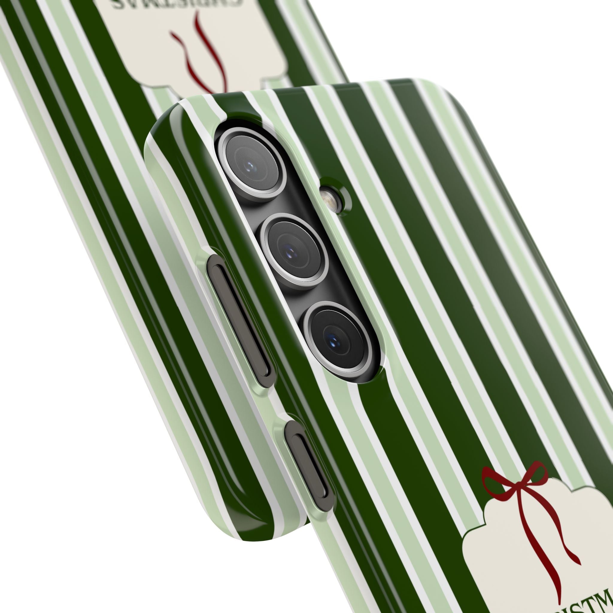 Christmas Vibes Only – schlank & stilvoll, schützt dein Smartphone zuverlässig vor Kratzern & leichten Stößen und bringt mit den frischen grünen Streifen und dem „Christmas Vibes Only“-Schriftzug moderne, entspannte Weihnachtsstimmung in deinen Alltag.